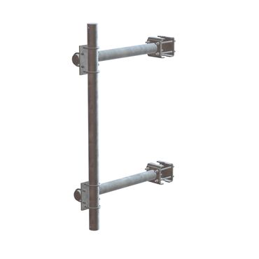 Antenna bracket in hot-dip galvanized steel for mounting on a mast or pipe with a diameter of Ø25-35mm with adjustable brackets.